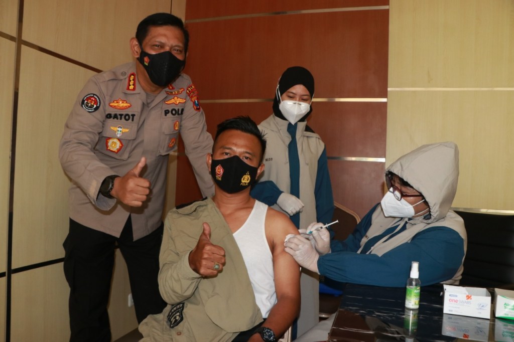 SURABAYA, – Sekitar seratus wartawan yang biasa bekerja di lingkup Polda Jatim. Hari ini mengikuti Vaksinasi Covid-19, di Gedung Pres Rilis polda jatim.